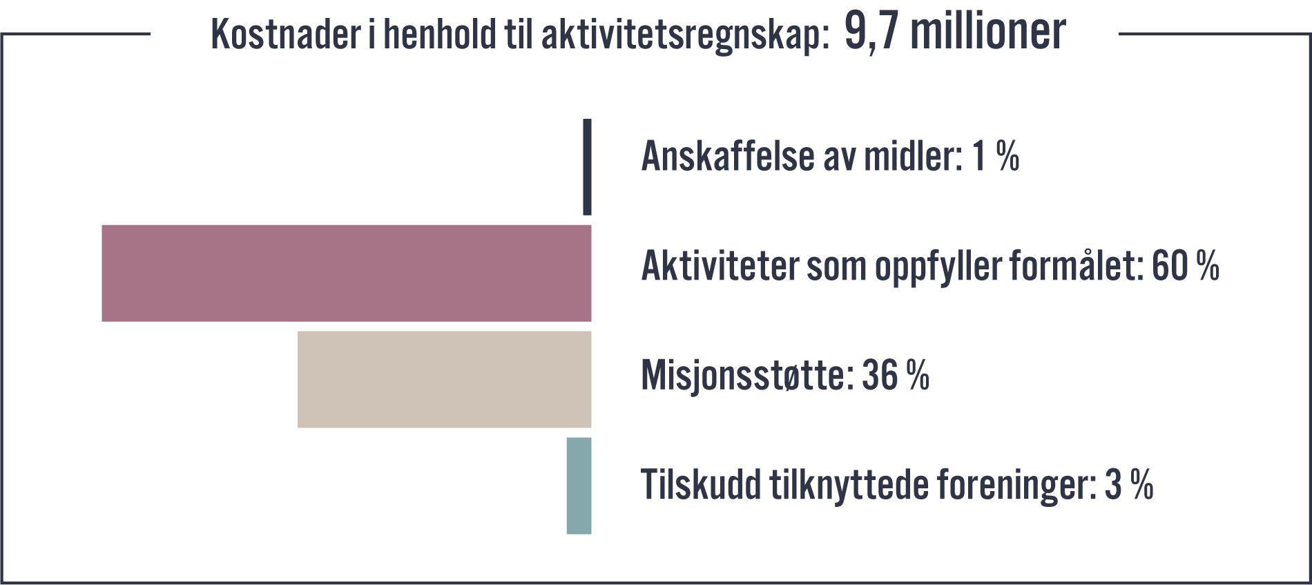 Øvrige kostnader til formålet gjelder hovedsakelig arrangementskostnader, avskrivninger, økonomi/administrasjon og tilskudd til BCC Servicesenter. BCC Servicesenter er en støttefunksjon for lokalmenighetene innen organisasjon, medlemssystemer, økonomi og jus, og skal tilrettelegge for en effektiv, trygg og legitim menighetsdrift.